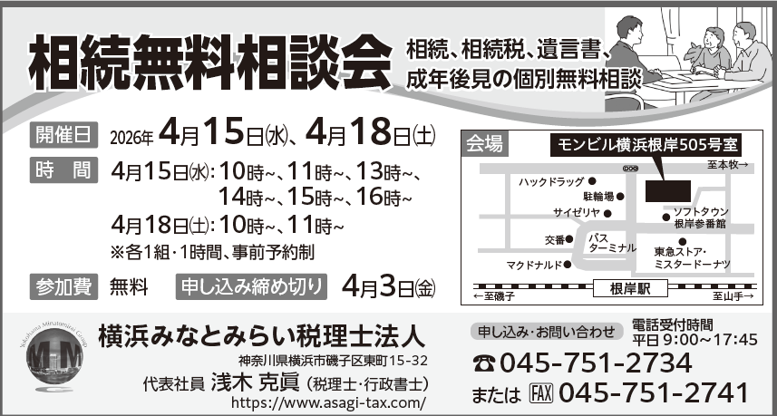 「相続・相続税・遺言書・成年後見の個別無料相談会」のご案内です。